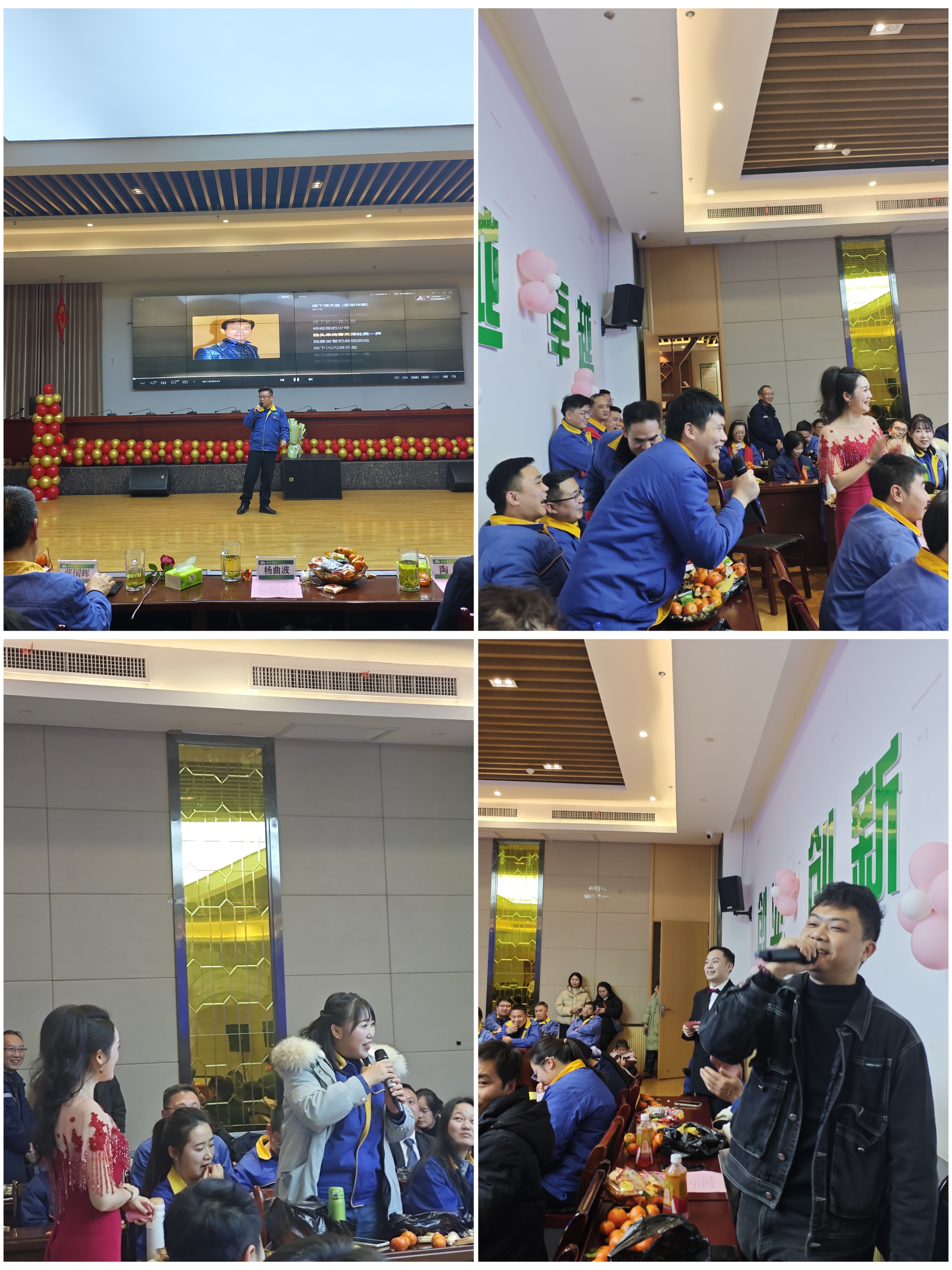 晚会期间穿插的“击鼓传花”“猜歌名”“踩气球”等互动游戏环节。在“击鼓传花”环节中,鼓声骤停,“花落”谁家全凭运气,公司领导和干部职工积极参与,轮番登台献唱,一展歌喉,倾情演唱,引得台下掌声雷动、欢呼不断。随后的“猜歌名”环节,大家凭借丰富的音乐储备和敏捷的反应能力,踊跃轮番作答献唱,其乐融融。“踩气球”互动环节,考验了团队协作与默契,现场欢声笑语、气氛热烈。